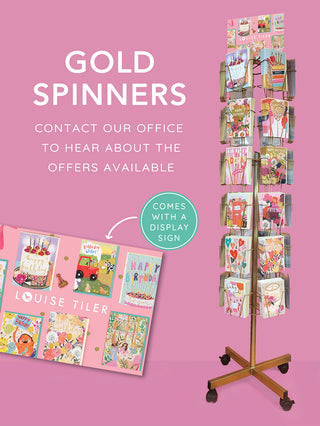 Our beautiful new gold greeting card spinners with a header sign are the perfect way to showcase a selection of Louise Tiler greeting cards.